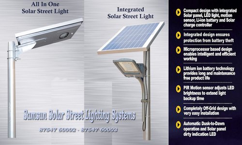 Samsun All-in-One Solar Street Light features integrated solar panels, Li-Ion battery, MPPT charge controller, dusk-to-dawn and motion sensors, automatic dimming, and dust indicator. Designed for excellent brightness and durability, it is ideal for college and school campuses. Supply and service available across Kumbakonam, Tanjore, Thanjavur, Mannarkudi, Pattukottai, Orathanadu, Koradachery, Kodavasal, Thiruvarur, Nagapattinam, Karaikkal, Myladuthurai, Sirkali, Chidambaram, Jayankondam, Ariyalur, Perambalur, Papanasam, Ayyampettai, Swamimalai, Avvor, and Ammapettai.